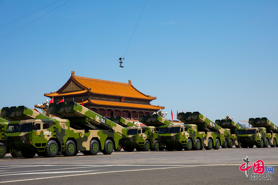 “师傅,我看见了,看见咱们的产品了!”2015年9月3日上午,航天三院159厂“90后”技工贺潇强一边看着电视,一边冲着电话激动地喊道。此刻,电视里正在直播纪念中国人民抗日战争暨世界反法西斯战争胜利70周年阅兵仪式,雄壮的中国人民解放军方阵依次走过天安门广场。受阅部队队尾,是支撑我们国家强军强国梦的导弹方阵。战略打击部队的6个方阵携带7种型号的常规导弹和战略导弹通过天安门广场,大国长剑,浩荡东方……