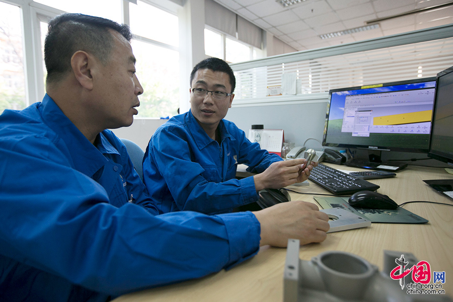 ?徒弟贺潇强和师傅刘志凯经常在一起研究产品改进工艺,贺潇强提出的“浅吃快跑”加工方式不但大大提高了产品的加工效率,还能避免产品在切削中的高温变形。获得了三院工艺技术革新一等奖。他们师徒二人共同攻克的某精密零件螺旋副自主生产,每年为单位节省几百万元的外协加工费,该工艺也获得了院里的工艺优化奖、成本工程奖。中国网记者 董宁摄影