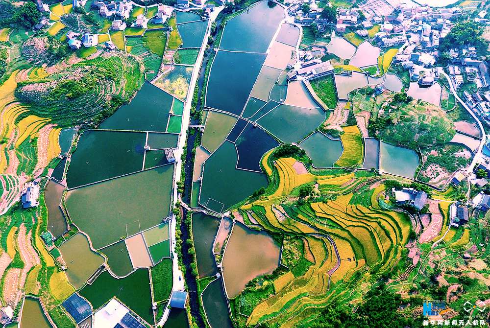 立秋之后,南方水稻逐渐成熟,金黄色的稻田呈现出别样美景。在重庆市万盛经开区南桐镇金龙村,金黄色稻田与鱼塘相互映衬,田野的线条在稻田中穿梭,美不胜收。从空中俯瞰,犹如天然“调色板”,色彩斑斓。新华网发曹永龙摄