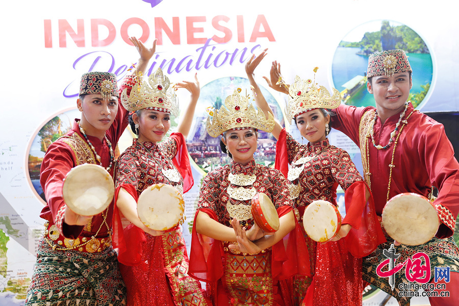 9月12日,来自印度尼西亚的演员在南宁国际会展中心“魅力之城”展馆表演歌舞。中国网记者 杨佳摄影
