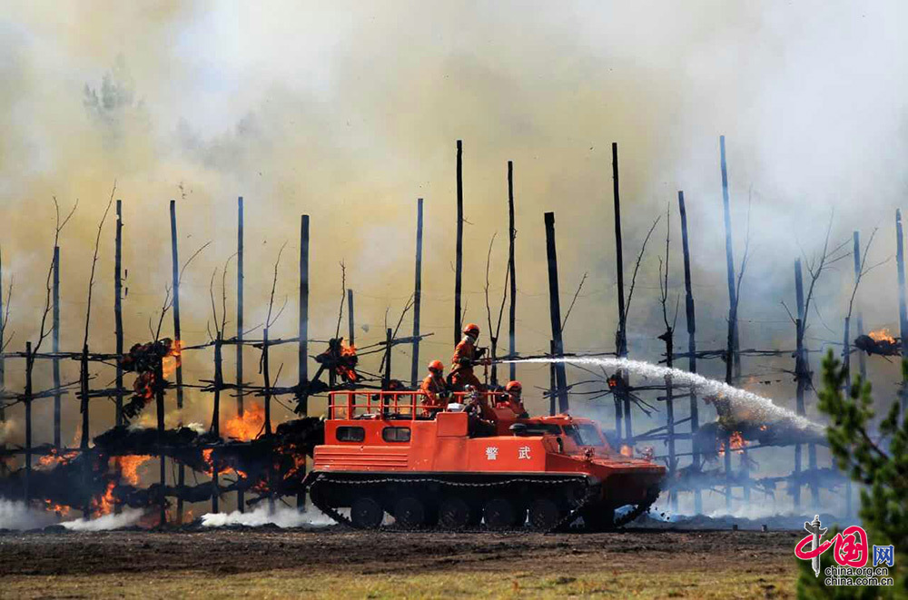 初秋草原腹地层林尽染、色彩斑斓,由呼伦贝尔市森防指和内蒙古森林总队共同建设的联合训练基地内,模拟3种不同燃烧类型的近500米火线纵横交错、一触即燃。