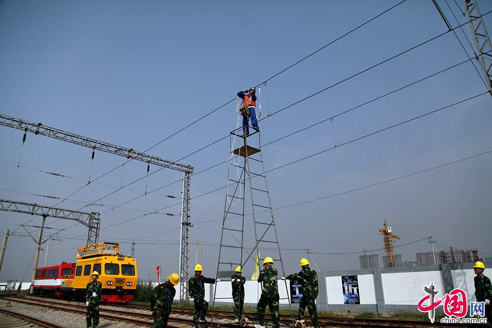 9月21日,中国中铁首届员工职业技能竞赛暨第十六届青年职业技能竞赛接触网大赛紧张进行中。中国网 赵娜摄影