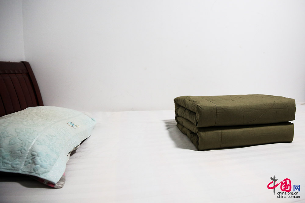 张喜忠的床铺上,军绿色被子被叠成整齐的豆腐块。退伍三十多年,张喜忠还保持了部队的良好习惯,他的团队也完全按照部队雷厉风行的风格进行管理,确保在大家需要的时候,第一时间到达现场,解决困难。中国网记者 董宁 摄影