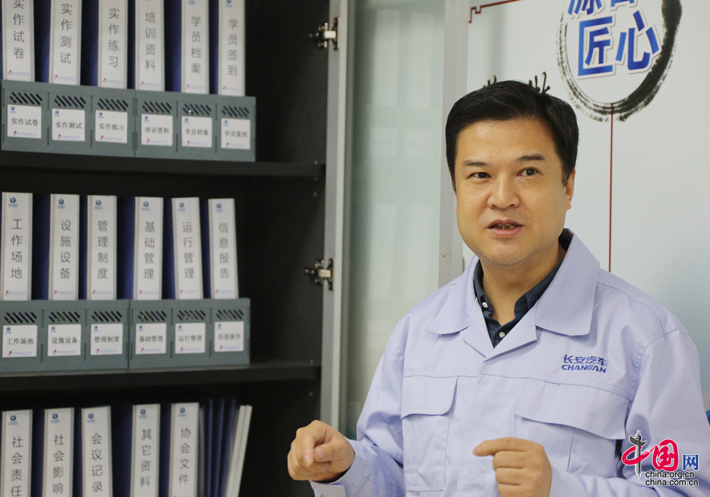 刘源发起了将厂里先进维修案例、技术、经验“留下来”的工作。先后编制了《长安汽车大学设备保全系列课程——高级工培训手册》(上中下册),里面收集了长安集团建厂以来的很多维修案例,是一个关于设备维修的百科全书。 中国网 杨楠 摄影报道