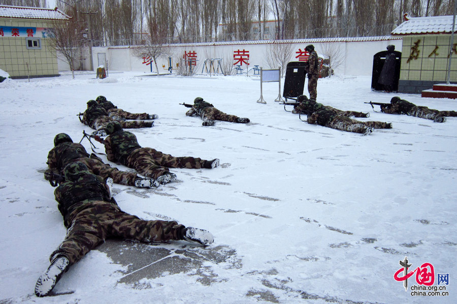 大雪刚过,武警县中队就组织官兵开展五公里越野训练,这对于高寒缺氧区域是一个难度很大的训练内容。