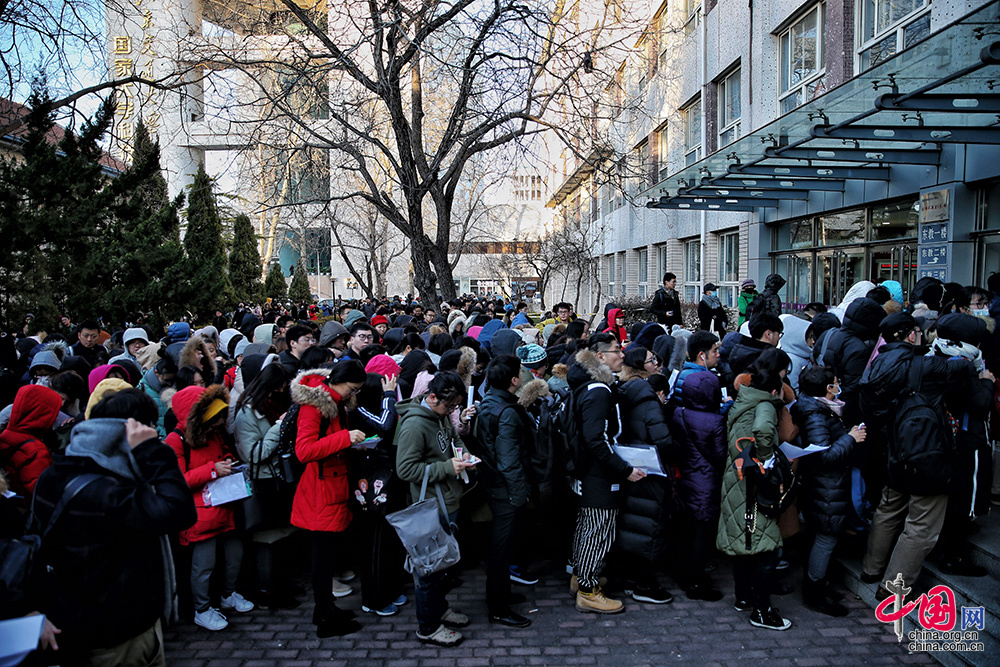 12月10日,2018年度中央机关及其直属机构公务员招考笔试开考。在北京交通大学考点,考生排队进入考场。中国网记者 郑亮 摄