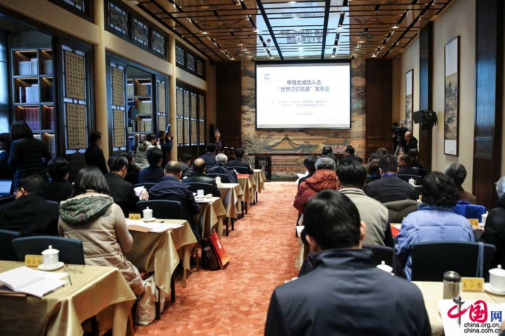甲骨文成功入选“世界记忆名录”发布会在故宫博物院举行。中国网记者 董宁 摄影