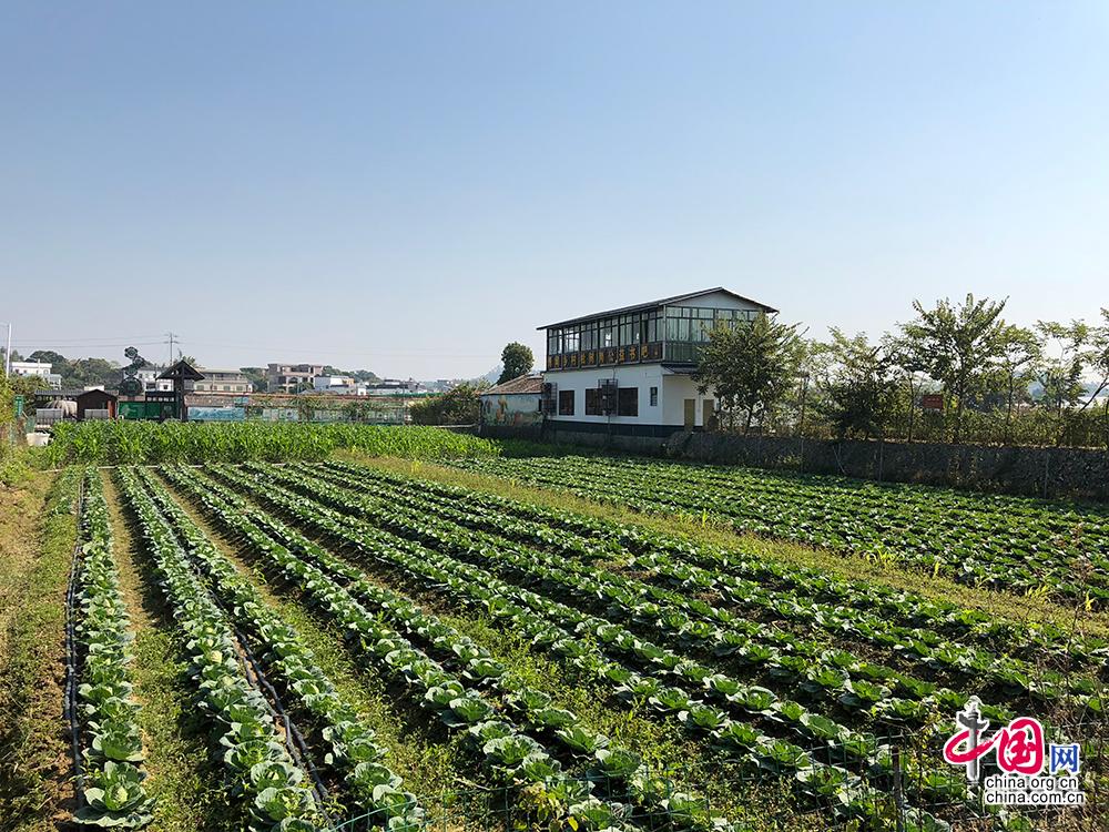一月份的罗浮山下,松树岗村一片生机盎然,河塘清澈见底,绿色的蔬菜在农田里被阳光映射的熠熠生辉。站在干净整洁的村道上,眼前绿色绵延,到处鸟语花香。