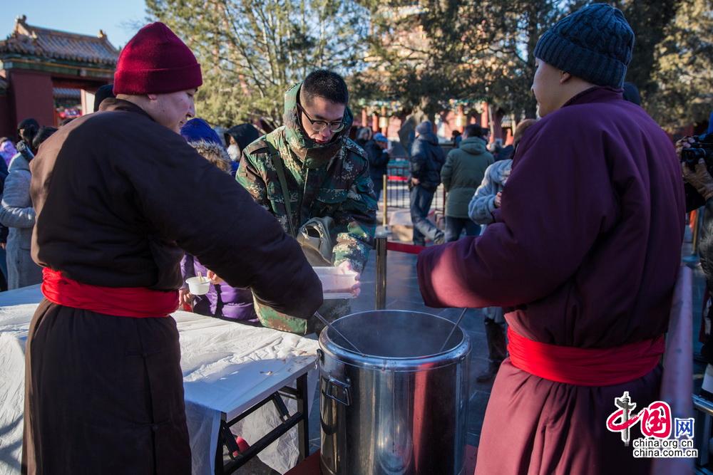农历十二月初八一早,市民前往雍和宫参加传统的“腊八舍粥”活动。中国网记者 郑亮摄影
