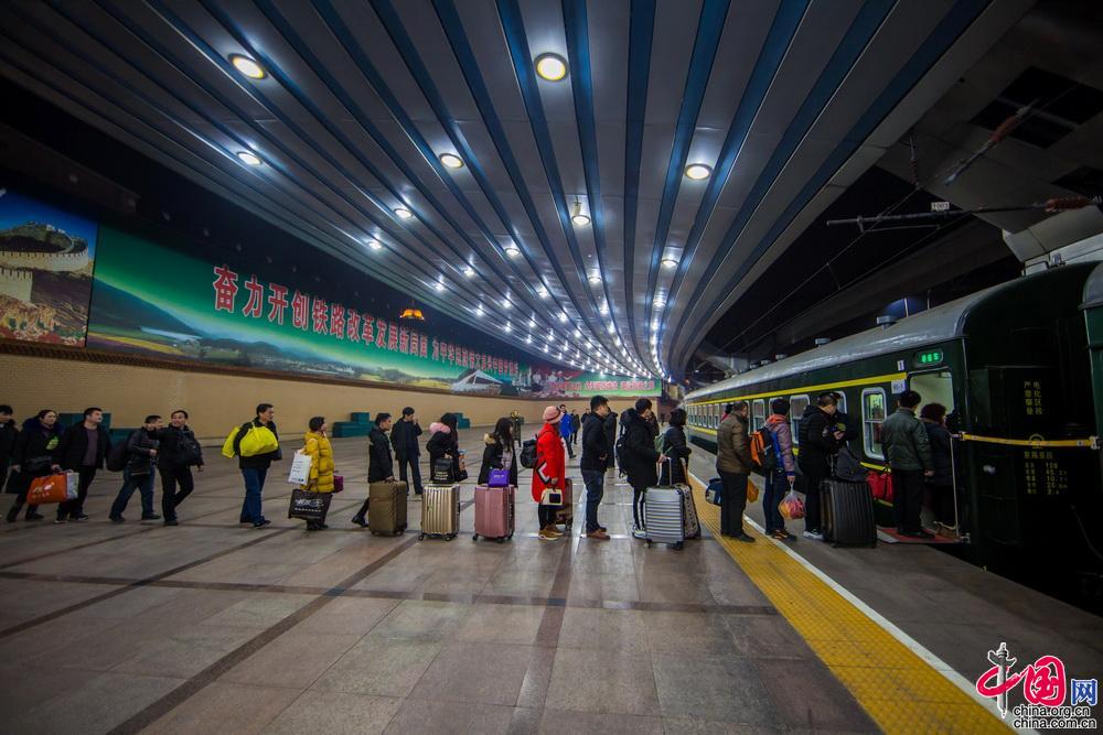 2018年2月1日,北京--重庆北站3603次首趟增开列车的开行,标志着2018年的春运工作正式全面启动。中国网记者 郑亮摄