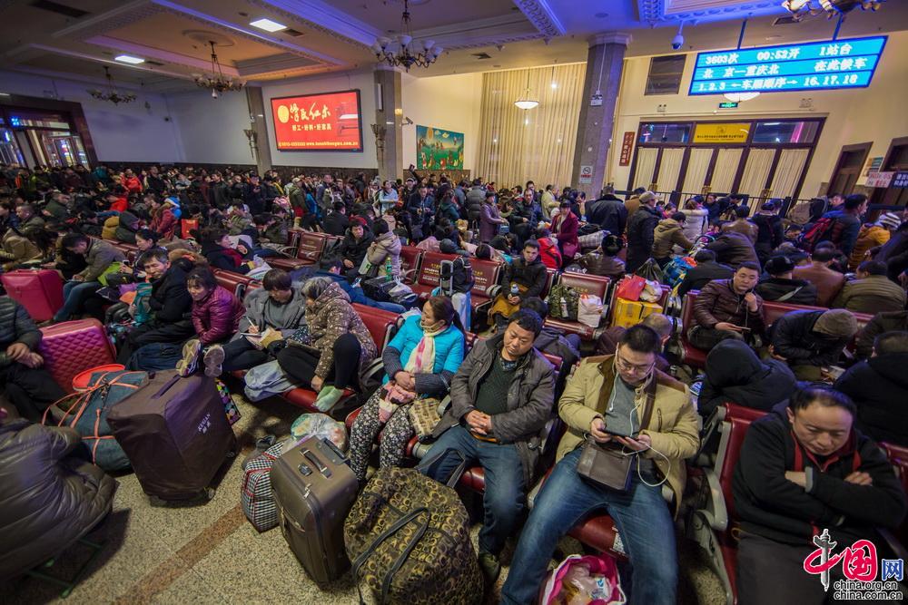 等待乘坐北京--重庆北站3603次首趟增开列车的乘客在候车大厅等待进站。中国网记者 郑亮摄