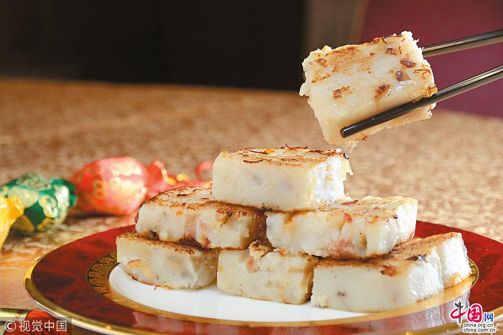 广东人过年都会蒸糕、食糕,“糕者高也”,寓意来年财旺行运、步步高升。除了糯米糕,还有萝卜糕、马蹄糕、发糕、芋头糕和千层糕等。其中最受大众欢迎的就是萝卜糕。萝卜糕是中式的传统糕点,采用在来米粉,在米浆中加入腌制好的萝卜丝等材料,上蒸笼蒸制而成的糕点小吃。
