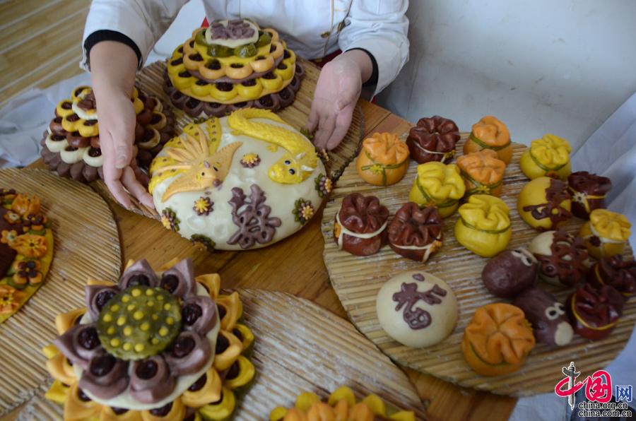 1月29日,山东省聊城市东昌府区居民高玉正在制作花糕。花糕是鲁西地区迎春节的传统面食,食材原料以枣和面粉为主,用蔬菜汁调色,再利用模具制作成生动形象的造型。花糕制作工艺包括榨汁、和面、称重、揉面、压面、放枣等工序,由于步骤复杂、造型多样,花糕的制作全靠手工。花糕(高)的寓意丰富,承载了千家万户希望“早(枣)发”的美好愿望,象征人们生活年年高、步步高。 (许文豪摄)