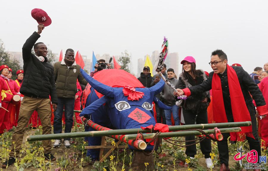 2018年2月4日,外国友人和成都市民在双流区黄水镇参加当地民俗文化活动“打春牛”。今年是黄水镇举办第四届“打春牛”民俗文化系列活动,共分为牌坊迎春、春牛闹春、彩舞鞭春等6个环节,吸引了众多市民和外国友人参与。邱海鹰摄