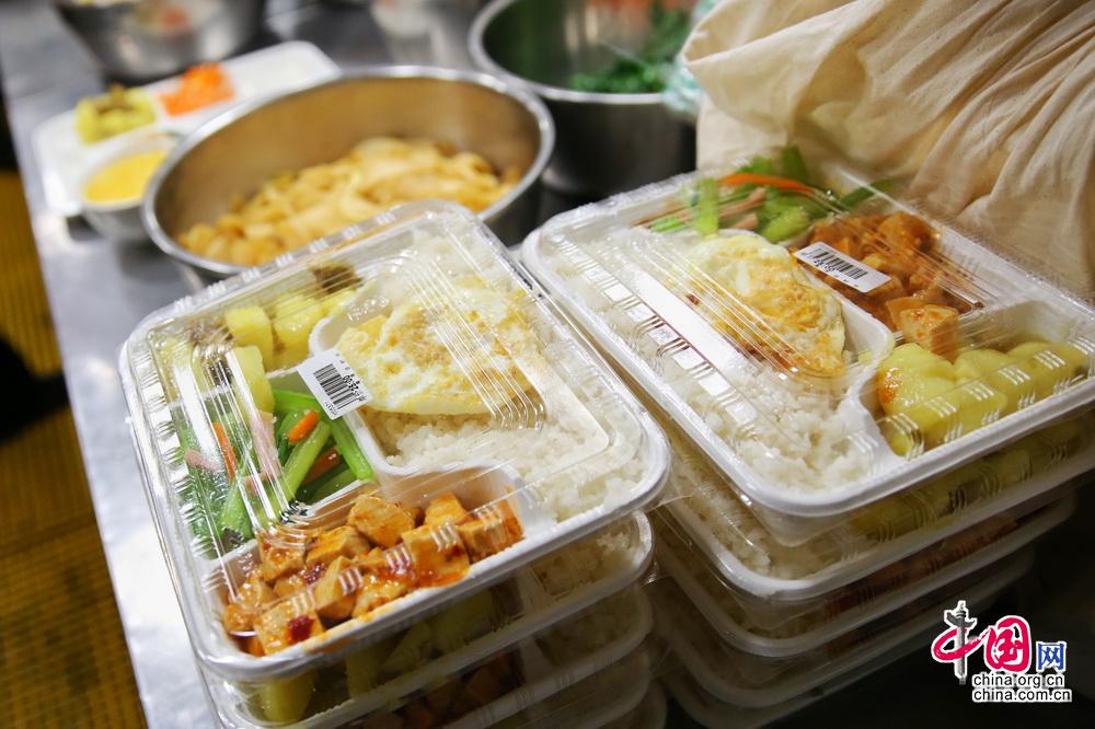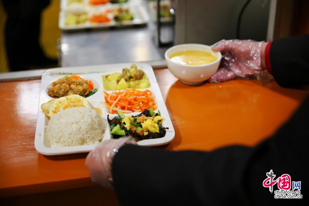咖喱鸡块、木须肉、炒胡萝卜丝,炸鸡腿配煎蛋,再加上米饭和热汤,45元一份现炒现买的套餐让旅客在回家的路上也可以饱饱口福。中国网记者 郑亮摄