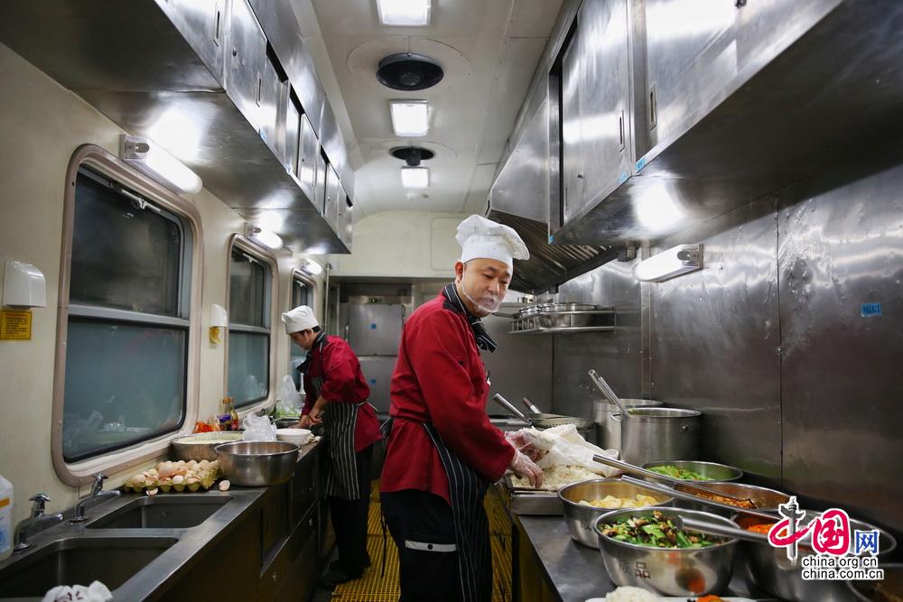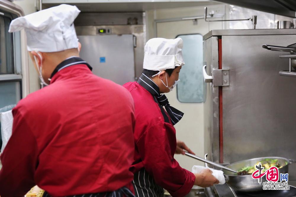 餐车上准备了专门烹饪清真食材的用具,当旅客有要求的时候可以满足。有时候在车上会遇到出家的乘客,郭师傅他们还会专门做些素斋素饭。中国网记者 郑亮摄