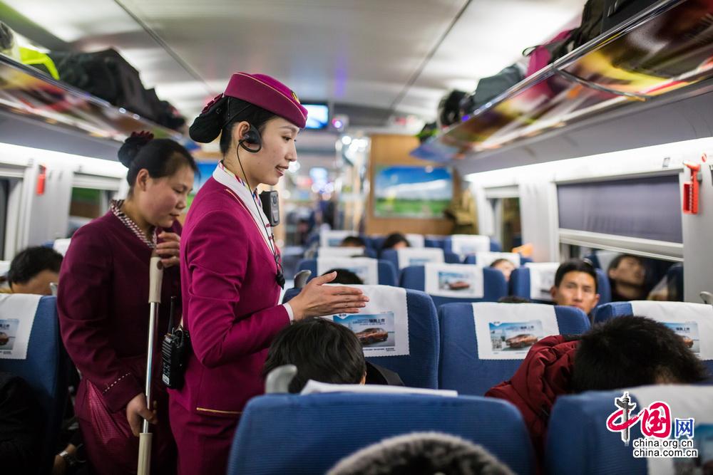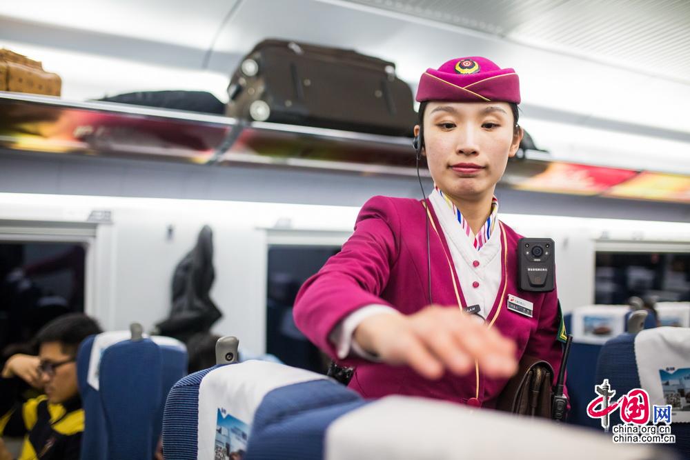 “我们平时工作虽然辛苦,但是得到乘客认可的时候我们真的会很高兴,记得有一年春运期间特别忙,我们组有一个姐妹因为工作强度大不舒服又不能休息,只能吃药缓解,当时有个一等座的乘客看出她不舒服,就主动帮她捏了捏,还说大年初一的,生着病还坚持工作都不容易。当时让我们觉得特别温暖。”中国网记者 郑亮摄
