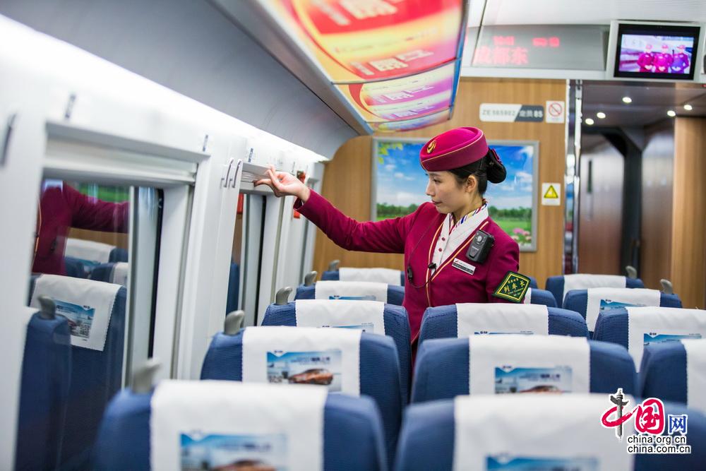 刚刚来到这条线路的时候妈妈就和我说,“从列车员到列车长,为乘客服务始终是要放在第一位的,成都这个线客流比较大,不管是乘务员、餐吧服务还是保洁,大家的工作强度都会特别高,但是不能因为工作累就降低了服务标准,反而要更尽心的为乘客服务。”中国网记者 郑亮摄