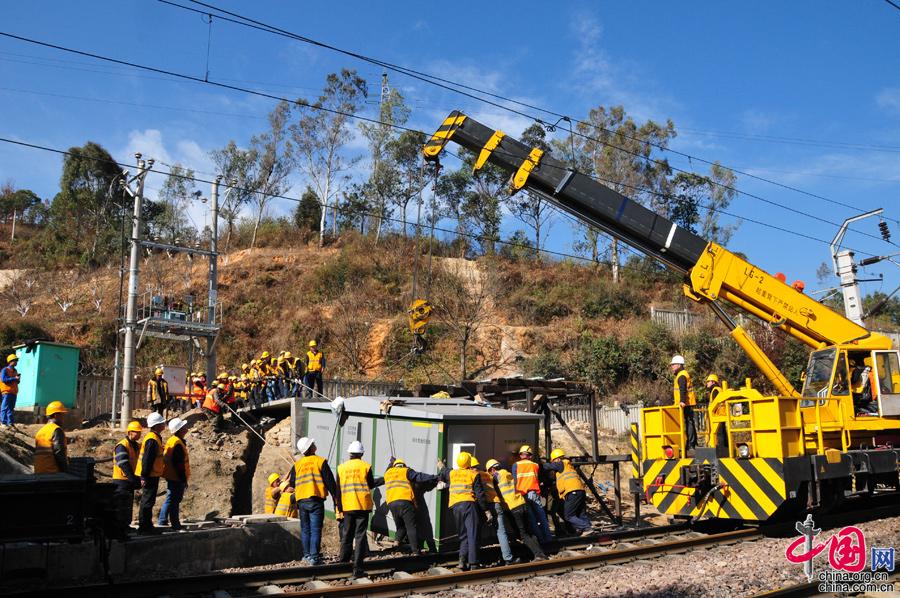 佳节虽已至,昆广战犹酣。春节期间,中铁电气化局集团一公司近2000名员工,为确保成昆铁路昆(明)广(通)段达速扩能改造工程3月底建成的工期目标,坚守在施工一线。
