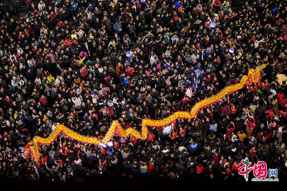 3月2日晚,2018洪江古商城春节旅游文化活动元宵收龙热闹非凡,代表洪江48个会馆的100只龙狮披红挂彩,踏街巡游,游客和市民纷纷上街“钻龙”、“摸龙”、“扯龙”,用一种传统的方式送龙飞升,开始新一年的拼搏和奋斗。