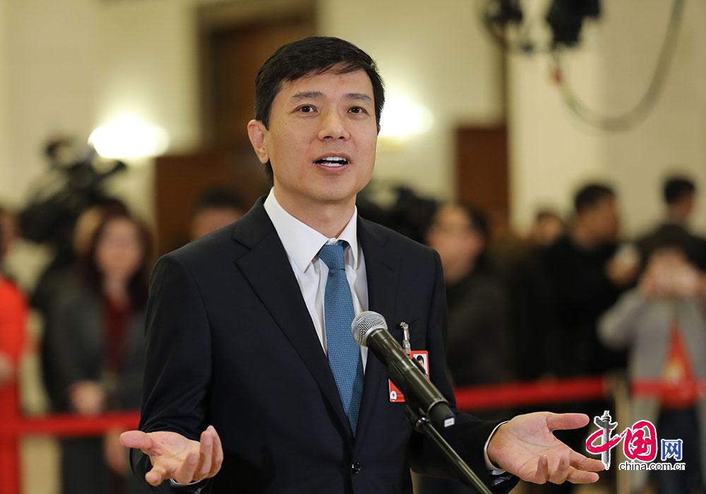全国政协委员、百度创始人、董事长兼首席执行官李彦宏回答记者提问。 中国网 董宁摄影