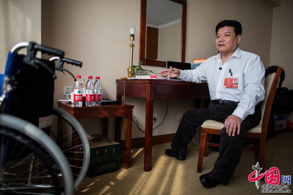 孙建博还关注到天生残疾这一人群,带来了《关于建立重度精神智力残疾人终身照料制度的建议》,对于这种天生就没有劳动能力的残疾人,国家应考虑制定终身照料的制度。同时他还提出《关于落实重度残疾人提前五年退休的建议》,希望残疾人在提前退休时就可以领取全额退休金。因为他们本来工资就很低,如果他领到70%的工资,还不够最低保障,那就失去了意义。中国网记者 郑亮摄影