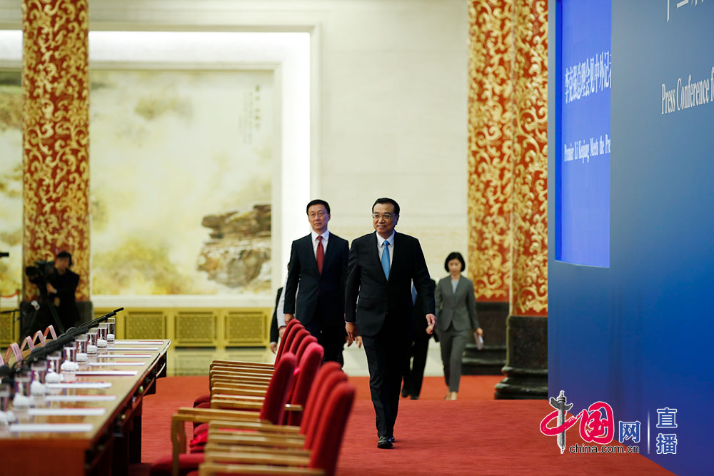 3月20日,国务院总理李克强在人民大会堂三楼金色大厅会见采访十三届全国人大一次会议的中外记者并回答记者问题。中国网记者 杨佳 摄