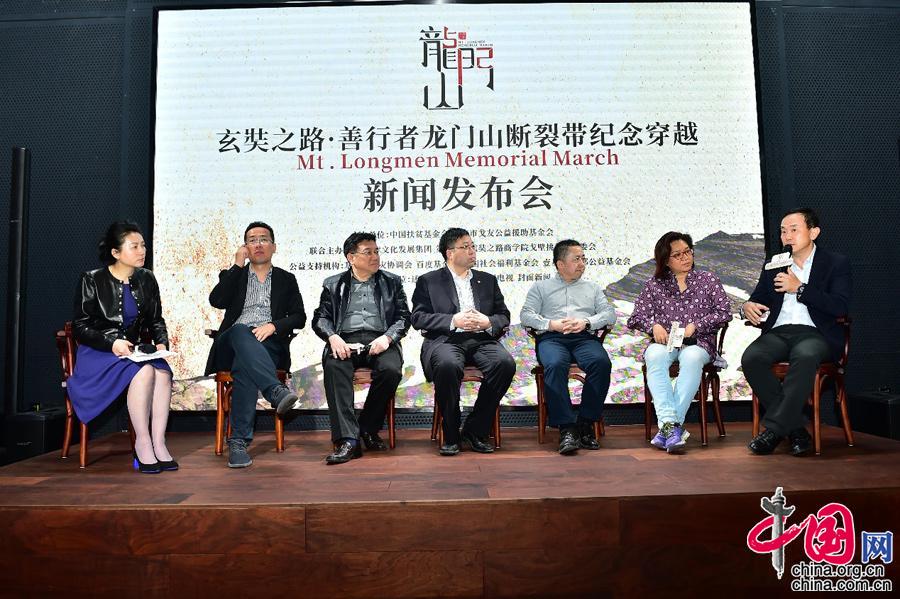 中国网北京讯(记者 杨楠)3月24日,由中国扶贫基金会、北京市戈友公益援助基金会共同发起,行知文化发展集团联合主办的“玄奘之路·善行者龙门山断裂带纪念穿越活动”新闻发布会,在北京“清泉·奥森”举行。北京市戈友公益援助基金会理事会轮值主席厉伟先生,执行理事柯旭红,执行理事、玄奘之路创始人曲向东,中国扶贫基金会副理事长兼秘书长刘文奎,中国扶贫基金会副秘书长王鹏,央视主持人王小丫,以及30家媒体记者共同出席了此次发布会。