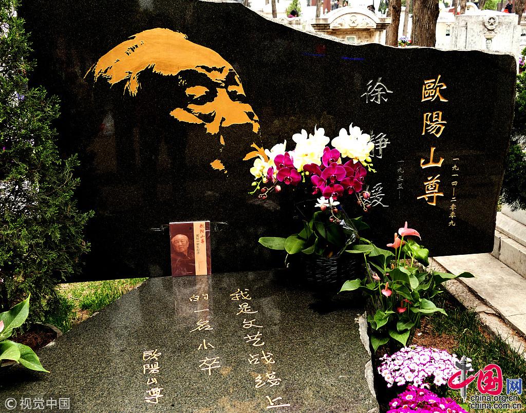 北京八宝山革命公墓,中国戏剧的奠基人和北京人艺的创始人之一欧阳山尊墓碑。图片作者:千龙图像库李文明
