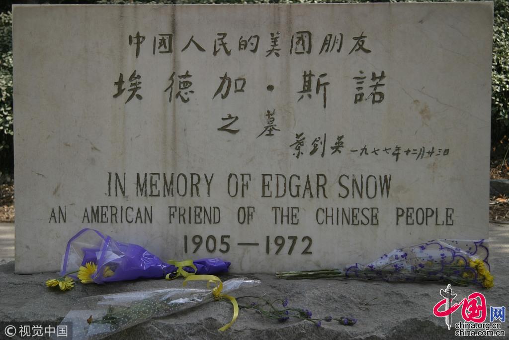 北京大学未名湖畔的埃德加·斯诺墓。图片作者:何子/视觉中国