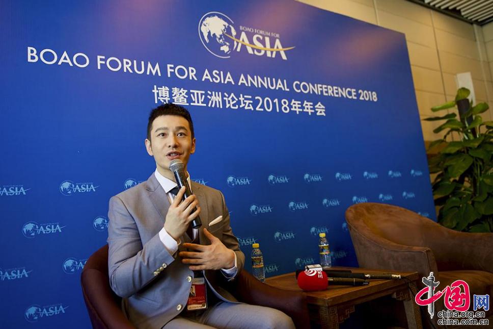 4月9日,博鳌亚洲论坛期间,黄晓明在记者见面会上回答记者提问。陈烨 摄