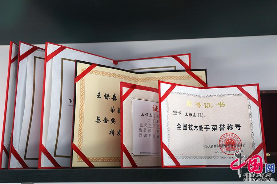 2013年后,以王保森命名并担任负责人的航天科工集团技能大师工作室、北京市首席技师工作室和科工二院劳模创新工作室相继成立,他的担子更重了,也更忙碌了。他将工作室打造成创新发展孵化器,取得国家专利2项;打造成人才培养基地,培育出8名“全国技术能手”、“航天技术能手”等核心技能人才。中国网记者 杨楠摄影