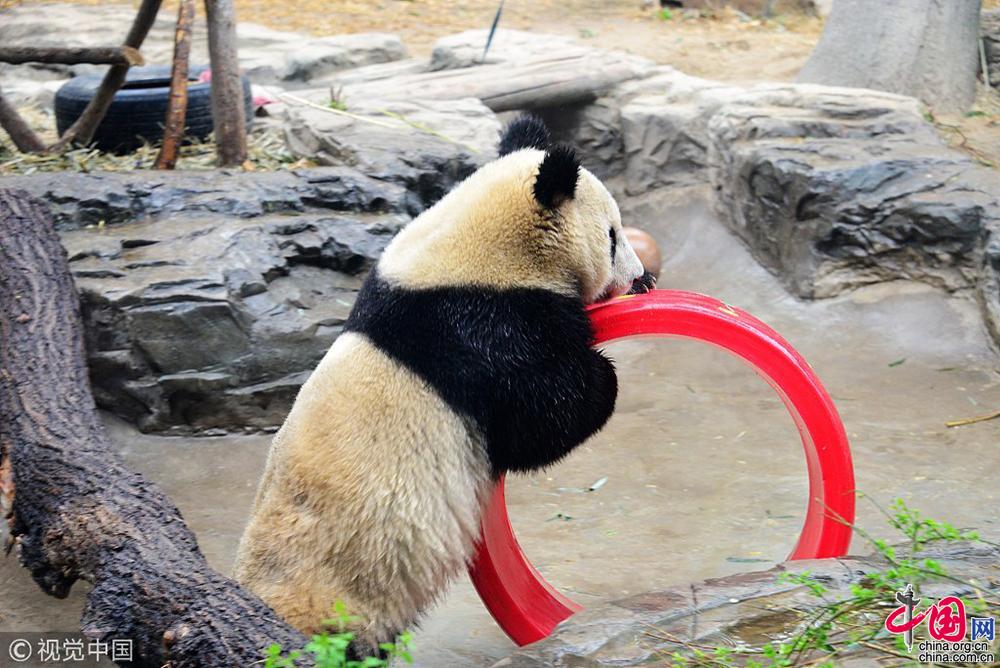 13日,一场春雨降临京城,给京城送来了些许寒意。在北京动物园大熊猫馆里,大熊猫们不惧降温降雨天气,在雨中撒欢,翻滚嬉戏,萌态十足。图片来源:视觉中国