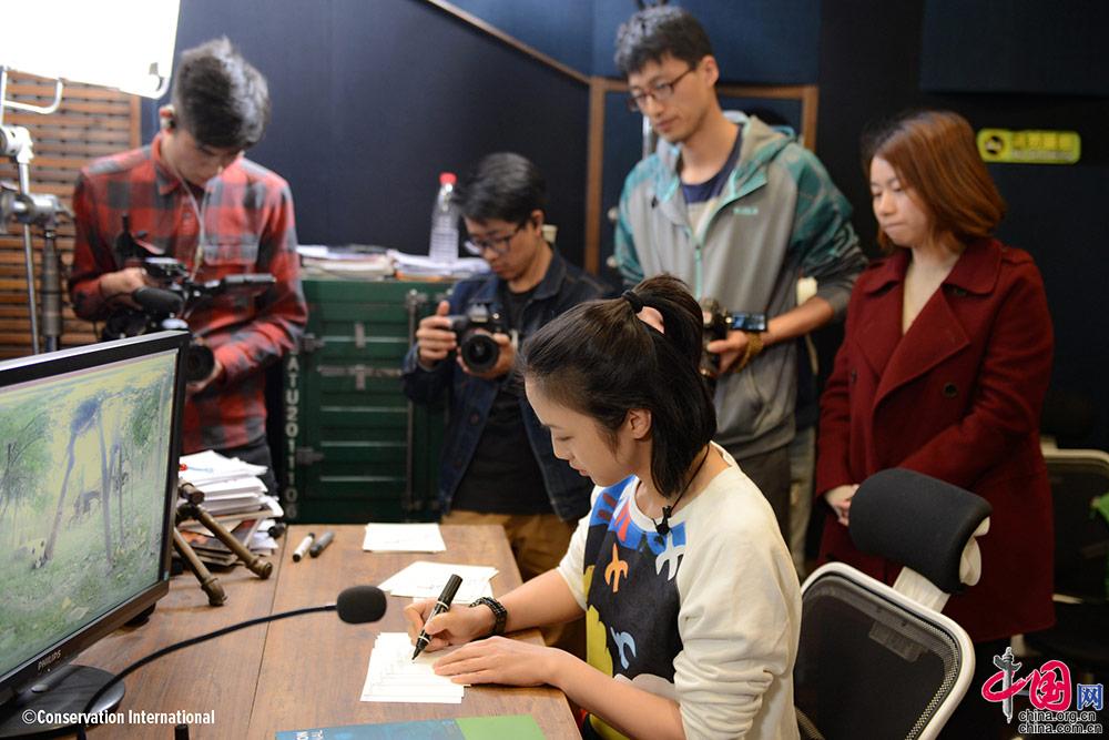 中国网2018年4月17日讯保护国际基金会(Conservation International)日前发布由保护国际基金会、成都大熊猫繁育研究基地、美国著名摄影师Ami Vitale共同打造,中国知名演员汤唯担任中文解说的VR公益影片《守护自然奇迹-大熊猫》的汤唯幕后配音花絮。视频中,汤唯一身清新造型,在配音现场字字斟酌,直至满意。汤唯表示,“很荣幸能为环境保护出力,希望身边能有更多的朋友为保护自然奇迹尽力”。