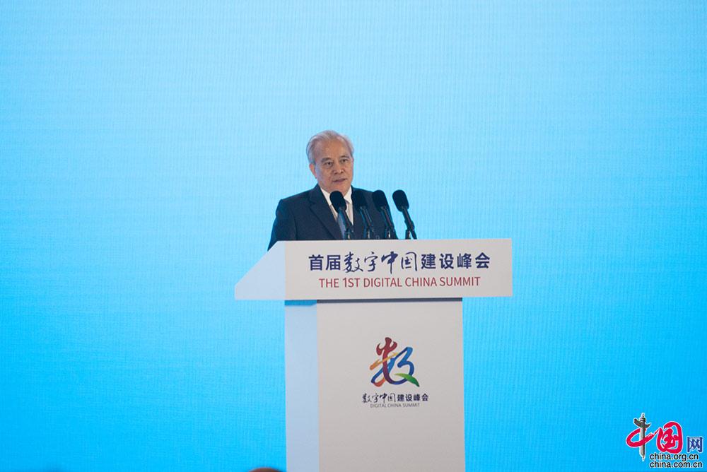 4月22日,首届数字中国建设峰会在福建省福州市开幕。国家电子政务专家委员会主任王钦敏讲话。中国网记者 伦晓璇 摄