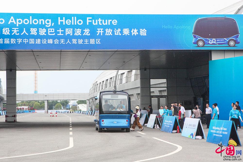 中国网福州4月23日讯(记者 伦晓璇)4月22日,首届数字中国建设峰会在福建省福州市开幕。数字中国建设成果展览会于4月21日至25日同步举行。在展览会上,由百度公司和金龙客车合作生产的国内首辆商用级无人驾驶巴士“阿波龙”首次面向公众开放试乘。预计峰会期间,将有逾千名市民有机会参与体验。