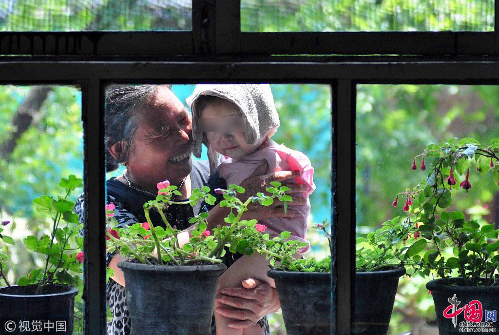 2011年7月15日,山西太原,寄养在许爱香家的无臂男童“小山峰”。图片作者:寅明/视觉中国