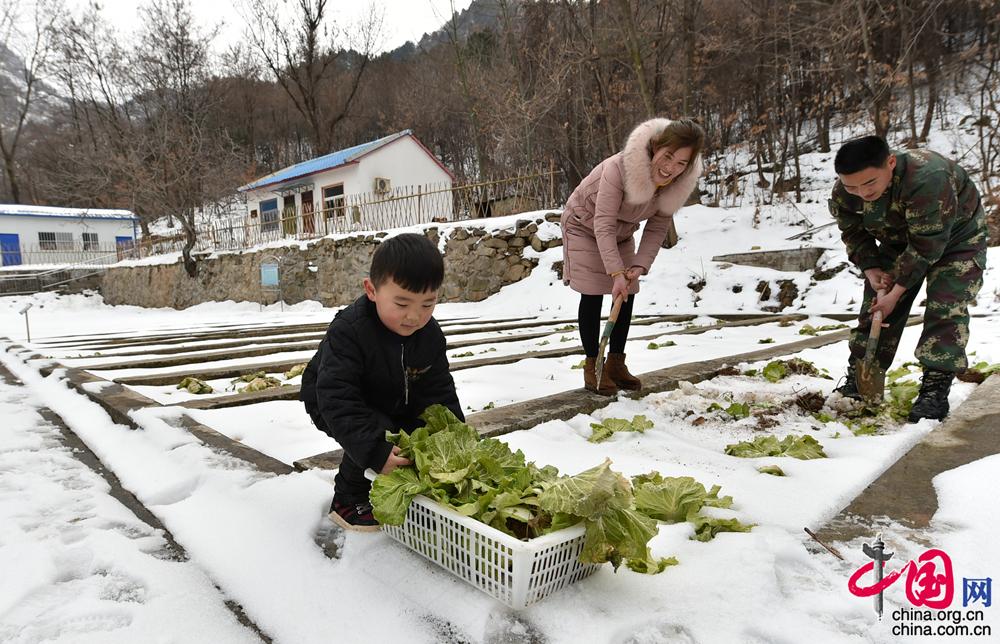 壮壮家有几块菜地,是连队搬走时留下来的。从农村出来的夫妻俩对土地都格外珍惜,他们种上了白菜、萝卜和菠菜等蔬菜。眼看春节临近,看爸爸妈妈在菜地整理“年货”,壮壮也主动跑过去帮忙,脸蛋冻得红扑扑的,但他的脸上却是纯真而又幸福的笑容。