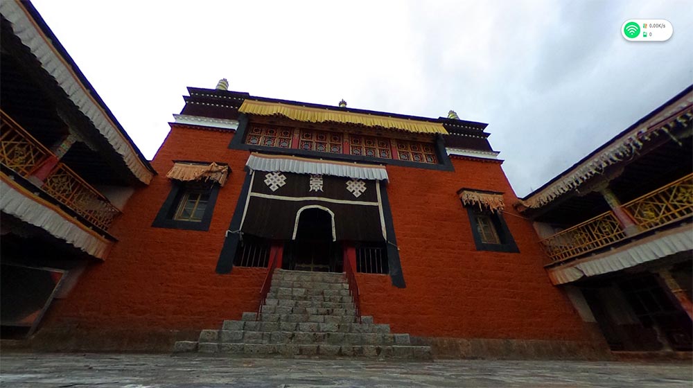 扎什伦布寺藏经阁(格桑思巴殿)坐落于强巴佛殿与尊胜佛殿中间,原为七世班禅灵塔殿旧址。整体建筑为三层石木结构,建筑面积1000余平方米。