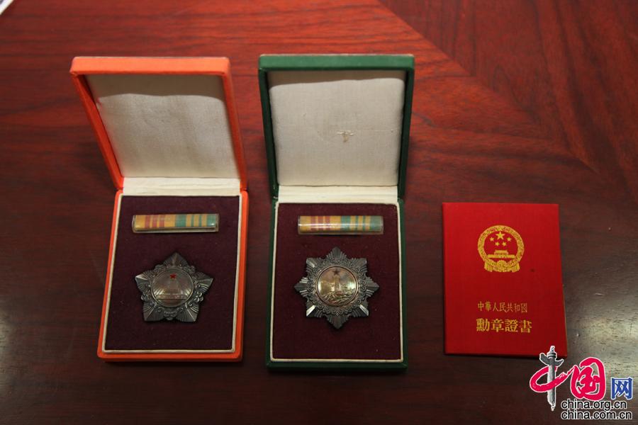 老人静静地坐在那里,轻轻抚摸着两枚勋章:“家里还有好多勋章,但这两枚最为意义重大,我一辈子的收获都在这里了”。刘一丹摄影