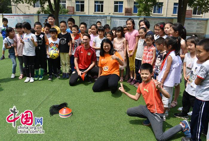 位于成都市高新区的东华育才学校是一所民办的打工子弟学校,而雅安市名山区红岩乡中心小学的学生平时对足球运动的了解也比较有限。此次开展的“拜耳足球小将”项目走进四川,分别为这两个学校捐赠了装有足球、简易球门、球衣、红黄牌、口哨等基本足球运动用品的拜耳“足球箱子”,更远道请来拜耳04勒沃库森足球队教练Christopher H?nsen,与拜耳志愿者们共同为小朋友带来了别开生面的足球小课堂,引领小朋友们走进足球运动的世界。