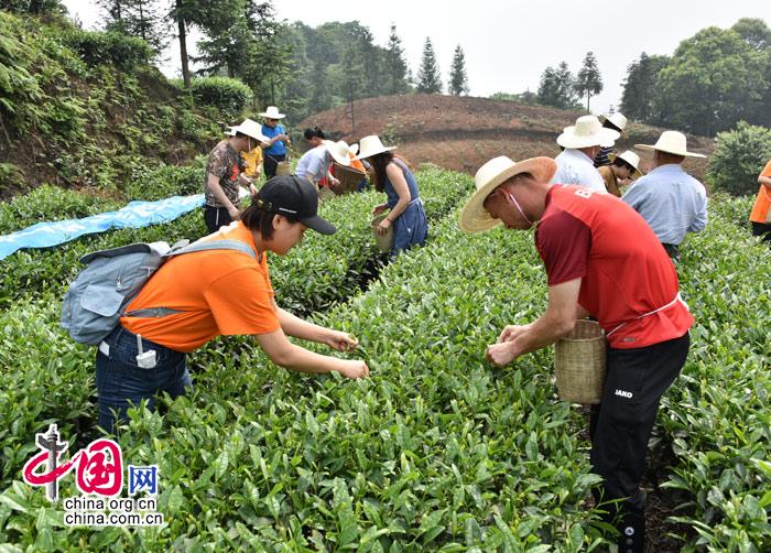 在此次活动中,拜耳中国员工志愿者一行约20人来到青龙村采茶,并与善品公社工作人员进行深入交流。