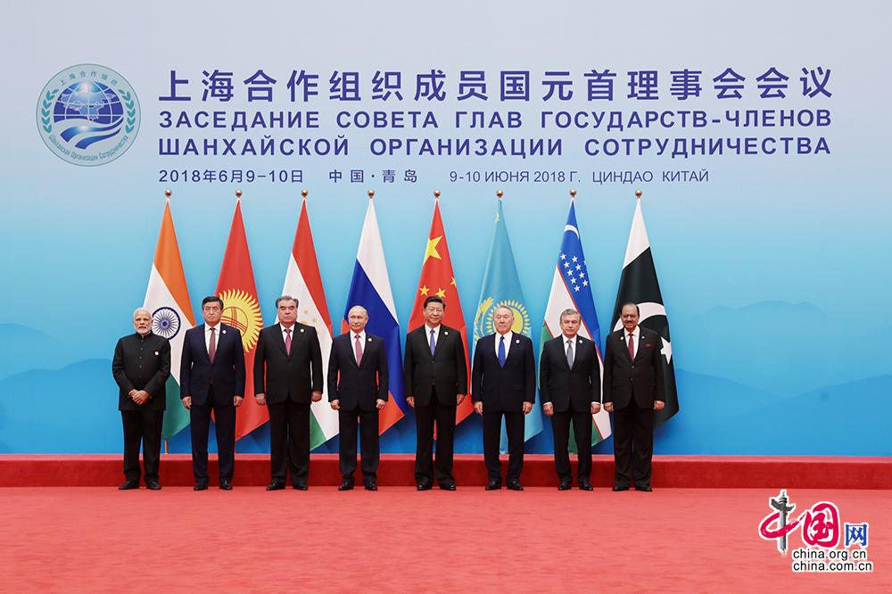 6月10日上午9时,上海合作组织青岛峰会小范围会谈迎宾仪式和集体合影在青岛国际会议中心举行。 人民画报社 徐讯摄影