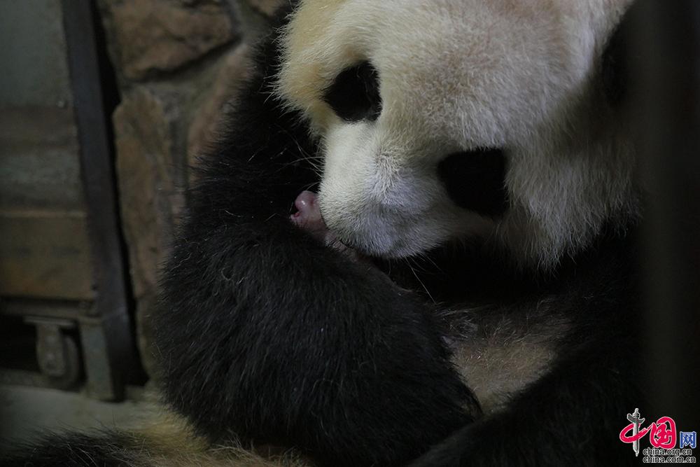 大熊猫“科琳”于6月16日中午12:20破水,下午5:53产下一仔,产程较长,据饲养员介绍,出生小仔的体形大,声音洪亮。科琳母性强,能够抱起小仔安抚、舔舐。