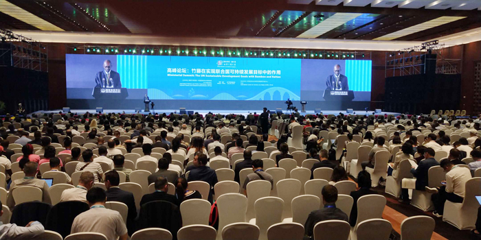 郝明金副委员长在致辞中指出,竹藤是绿色、可再生的战略资源,在传播生态文明理念、推动绿色增长、应对气候变化、改善生态环境、促进就业增收、扩大南南合作等方面发挥着独特、不可替代的作用。竹藤产品具有绿色、环保、低碳、可循环等特征,与人们的生活紧密相连,与生态环境保护休戚相关。当前,国际社会高度关注资源、环境和绿色可持续发展,为世界竹藤事业发展提供了前所未有的机遇。中国政府高度重视生态文明建设,通过实行一系列绿色发展的政策措施极大地促进了中国竹藤事业的发展。中国政府愿通过共建“一带一路”和深化南南合作,为推动沿线国家的可持续发展、建设美丽世界贡献中国智慧和中国方案。