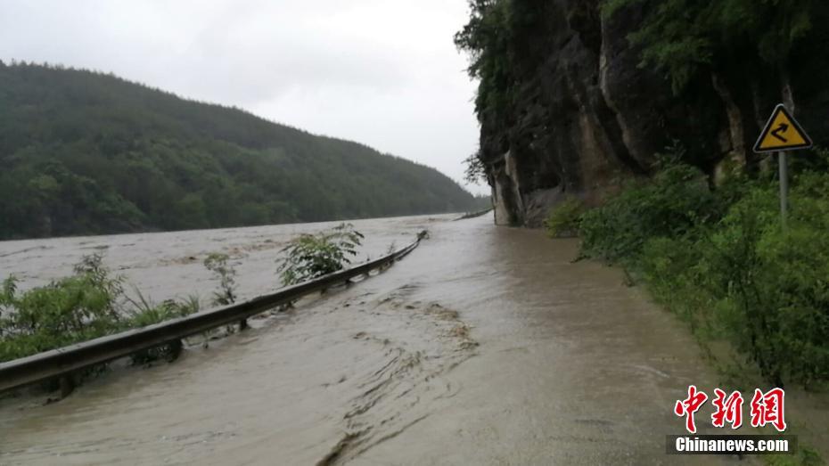 受连续强降雨影响,6月26日,暴雨致北川、平武、江油、安州等地多条道路塌方、泥石流、路基塌陷等,道路中断,目前正在组织机械抢通。同时,各区县交警大队结合辖区道路交通实际,采取临时交通管制措施。北川北松路河水漫过路面。 绵阳警方供图