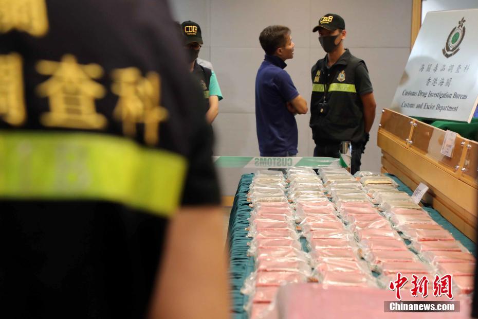 7月1日,香港海关毒品调查科毒品调查课人员守护缉毒行动中检获毒品。香港海关在6月30日缉毒行动中,在香港屯门捣破一个怀疑毒品储存中心,共检获约79公斤怀疑可卡因及约1公斤怀疑冰毒,估计市值约8000万港元,是海关5年来捡获最大批的毒品,行动中拘捕一名52岁男子。中新社记者 洪少葵 摄