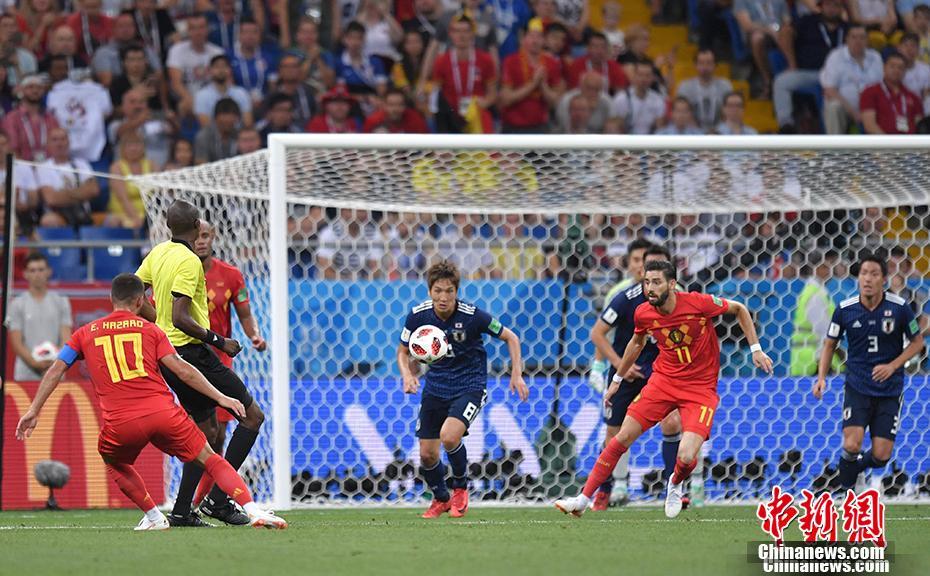 北京时间7月3日凌晨2:00,俄罗斯世界杯一场1/8决赛在罗斯托夫球场打响,在落后两球的情况下,比利时队凭借着两位替补奇兵的进球,以3:2逆转战胜日本队,惊险晋级八强。 中新社记者 田博川 摄