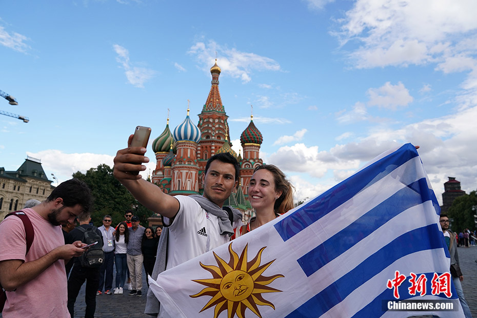 当地时间7月5日,2018俄罗斯世界杯足球赛休赛日,来自世界各地的球迷在莫斯科红场游览、合影。 中新社记者 毛建军 摄