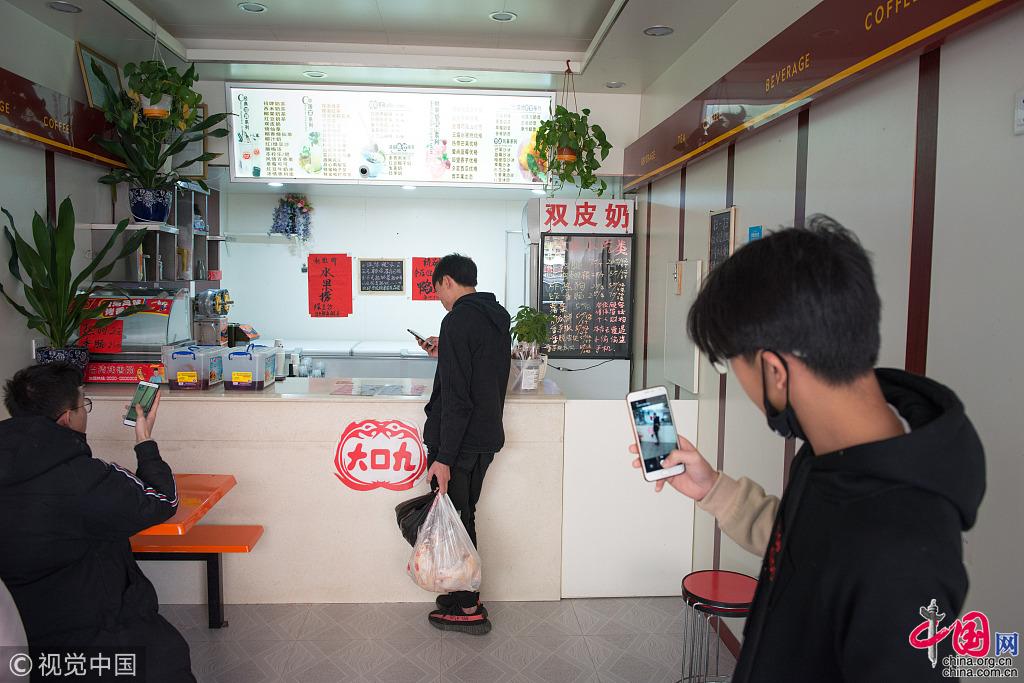小镇上的奶茶店,这里聚集了不少当地的年轻人。粉丝拍到“表哥”在买奶茶的短视频,发布后很快成为了当地热门视频。 图片作者:Chin Chen/视觉中国